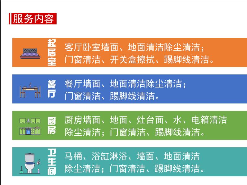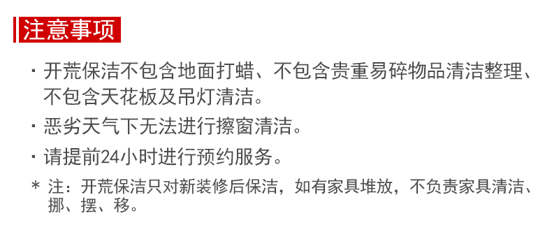 適合三個(gè)月以上或很久未徹底清潔的普通家庭房屋/出租房回收或入住/搬家后的房屋4居室及以上按10元/平米計(jì)算,請拍下后聯(lián)系客服改價(jià)或服務(wù)完成后在線補(bǔ)價(jià)。