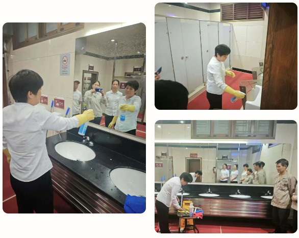 6月27日開展的第二期培訓(xùn)聚焦“衛(wèi)生間深度清潔”專題。陳經(jīng)理系統(tǒng)傳授了玻璃清潔的“四步工作法”和異味治理方案,通過現(xiàn)場實操演練,幫助員工攻克日常工作中的難點問題。參訓(xùn)員工紛紛表示,這種理論聯(lián)系實際的培訓(xùn)方式讓他們獲益良多。
