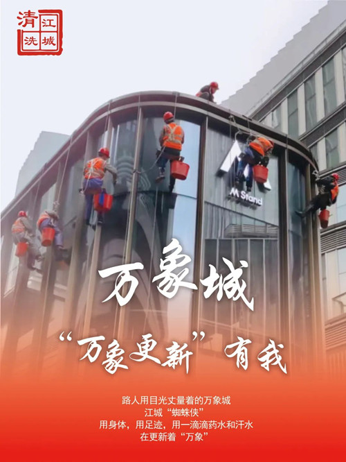 新的一年,萬(wàn)象城將以嶄新面貌迎客。江城清洗工程隊(duì)期望它能匯聚更多歡樂(lè)。若您也想讓地標(biāo)建筑外墻潔凈如新,江城清洗工程隊(duì)?wèi){借其專業(yè)、專注、耐心的外墻清潔工,定是您的.佳選擇,助您共筑城市美麗風(fēng)景線。